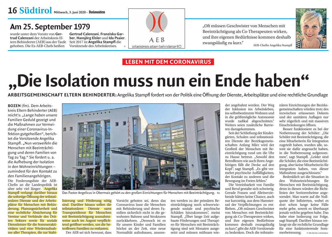 Startseite » „Die Isolation muss ein Ende haben“ Der AEB fordert von der Politik eine Öffnung der Dienste, Arbeitsplätze und eine rechtliche Grundlage