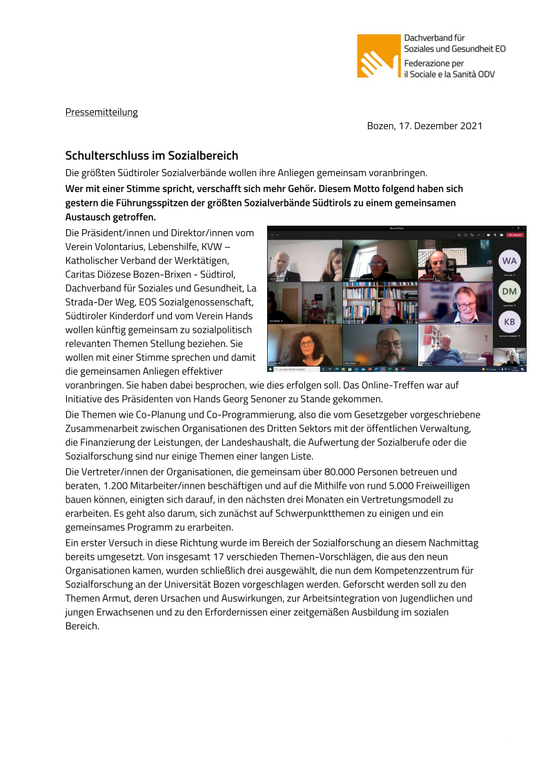 Startseite » Schulterschluss im Sozialbereich – Dachverband für Soziales und Gesundheit