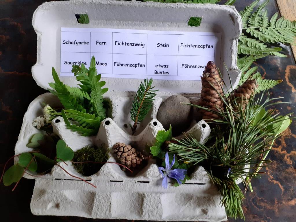 Am Nachmittag wurden die Familien von einer Waldpädagogin begleitet und vieles wurde gemacht: ein Waldsofa, Mobile aus Naturmaterialien, Kräutersalz usw.