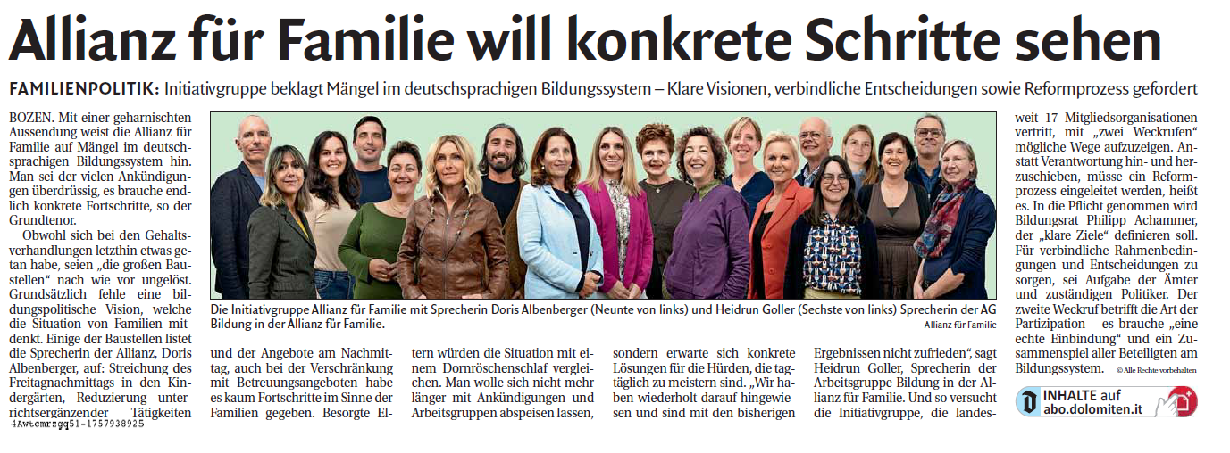 Presseartikel in der Tageszeitung Dolomiten am 30.09.2025: