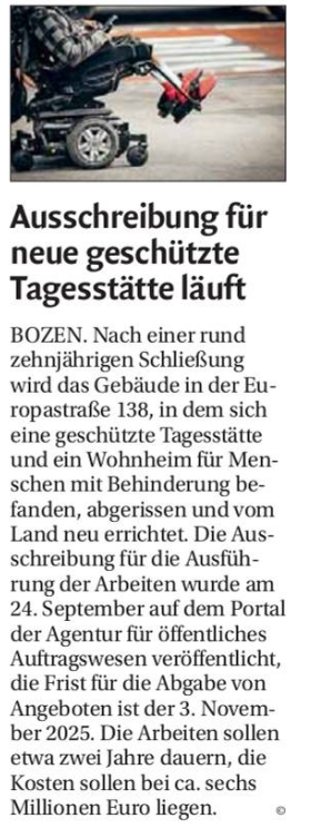 Ein wichtiger Schritt für Inklusion in Bozen“ – Eine neue Einrichtung für Menschen mit Behinderung