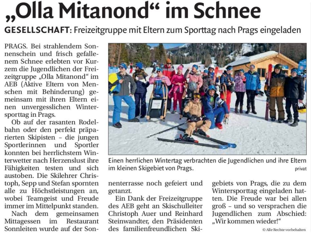 Online-Artikel „Unser Tirol“: 10 Jahre Teilhabe und Inklusion von Menschen mit Behinderungen: AEB fordert mutige Umsetzung – UnserTirol24