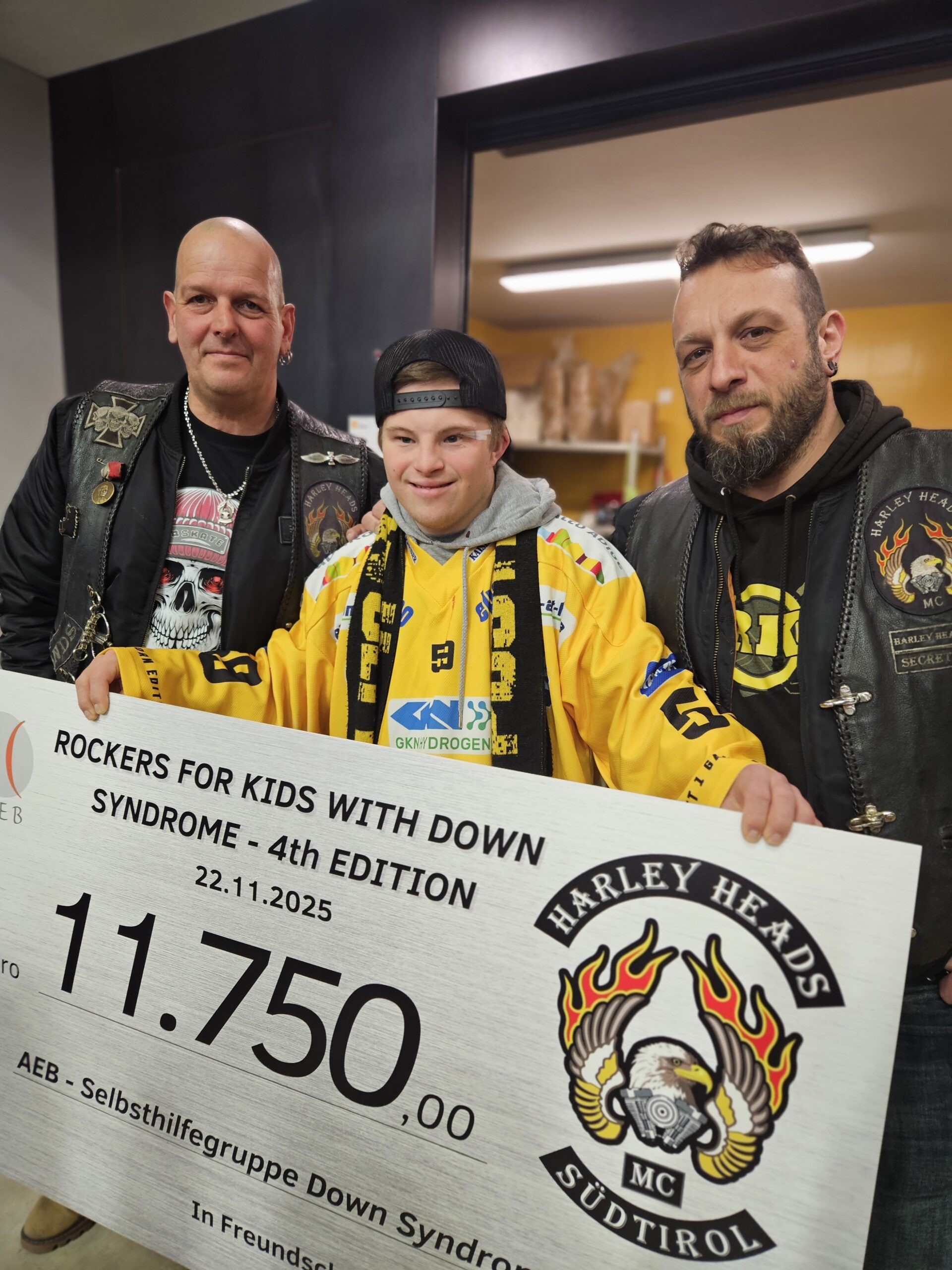 Harley Heads MC Südtirol überreichen beim HC-Pustertal-Family-Day 11.750 Euro für Kids mit Down-Syndrom