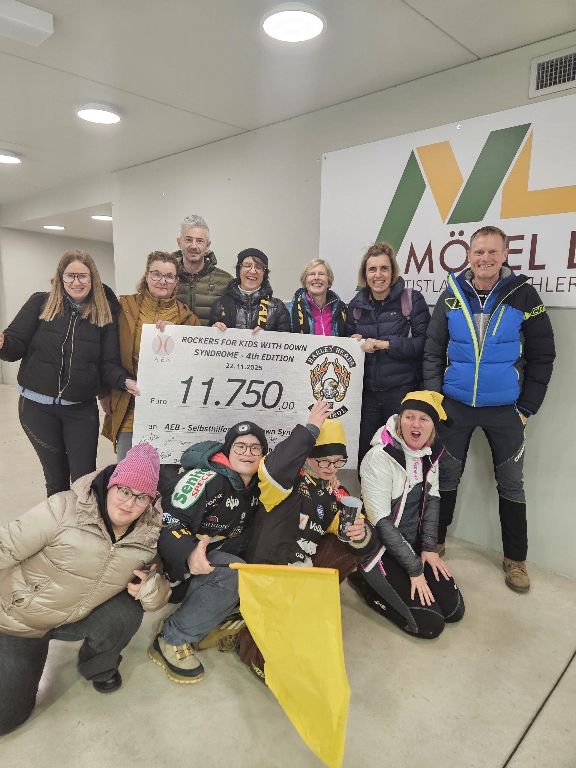 Im Rahmen des ausverkauften Heimspiels des HC Falkensteiner Pustertal gegen Budapest kam es am Samstagabend zu einem besonders emotionalen Moment: Die Harley Heads MC Südtirol überreichten dem AEB – Aktive Eltern von Menschen mit Behinderung bereits zum vierten Mal einen Spendenscheck zugunsten von Kindern und Jugendlichen mit Down-Syndrom im Pustertal. Vor mehr als 3000 Zuschauerinnen und Zuschauern und einem überzeugenden 5:1-Sieg der Wölfe wurde die Spendensumme von 11.750 Euro übergeben – ein Betrag, der sogar das Ergebnis des Vorjahres deutlich übertrifft.